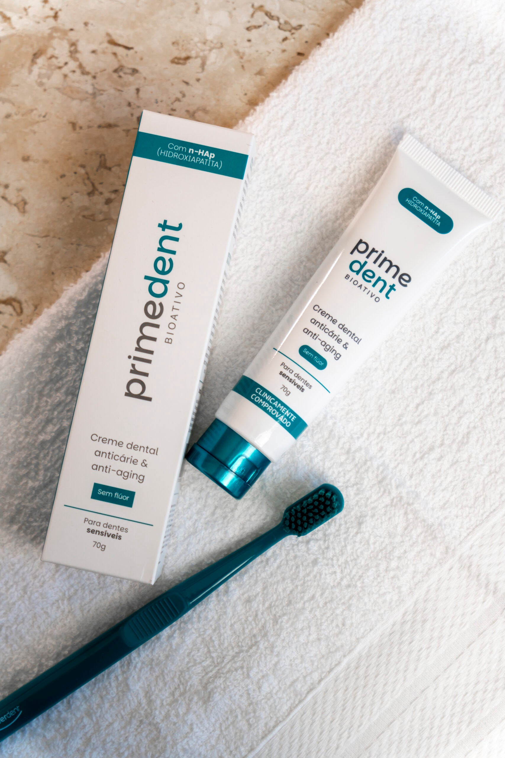 Primedent Bioativo usa hidroxiapatita nanométrica (n-HAp), uma substância natural que compõe nossos dentes e ossos. Ela repara e protege gerando uma proteção completa e profunda.
